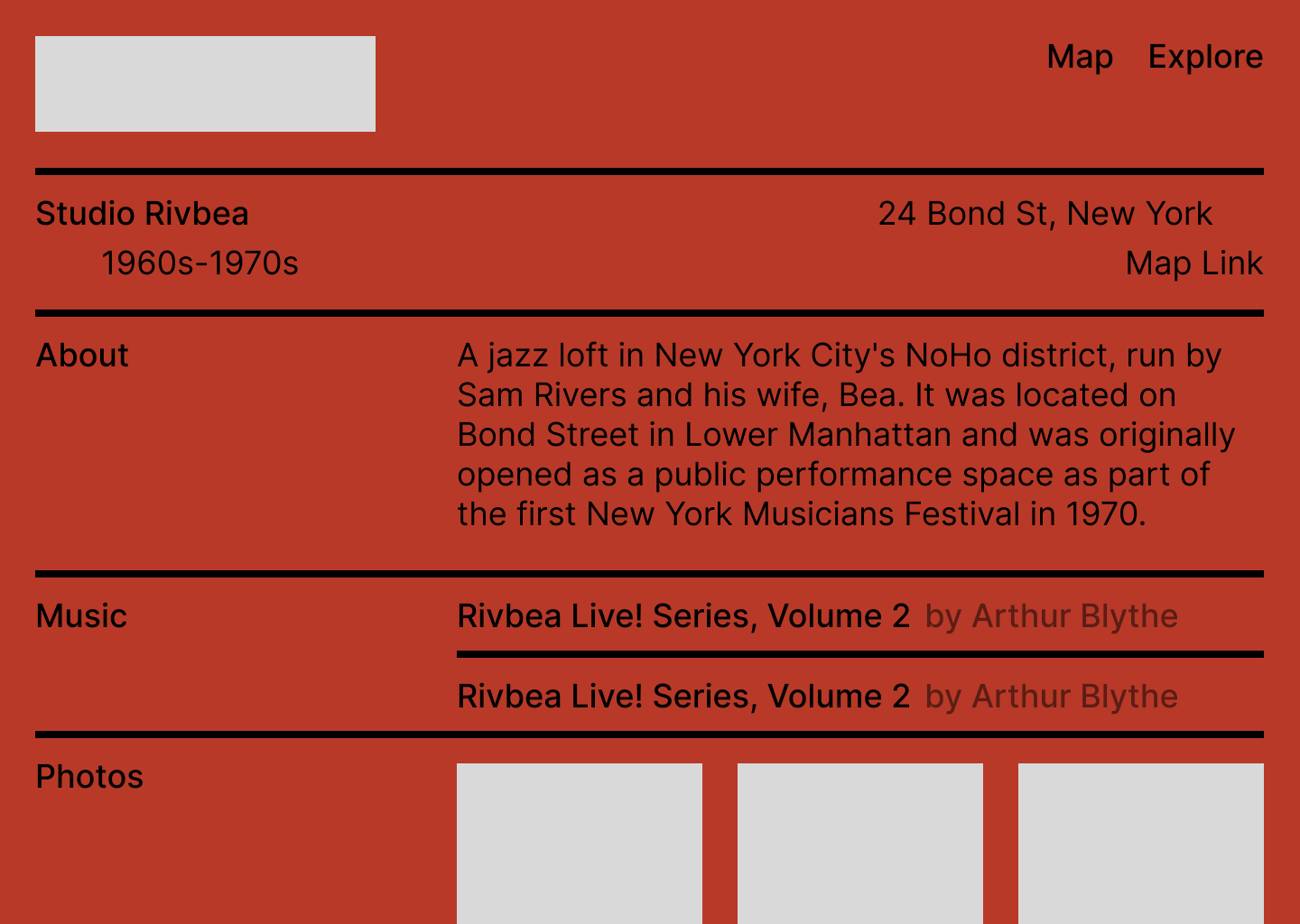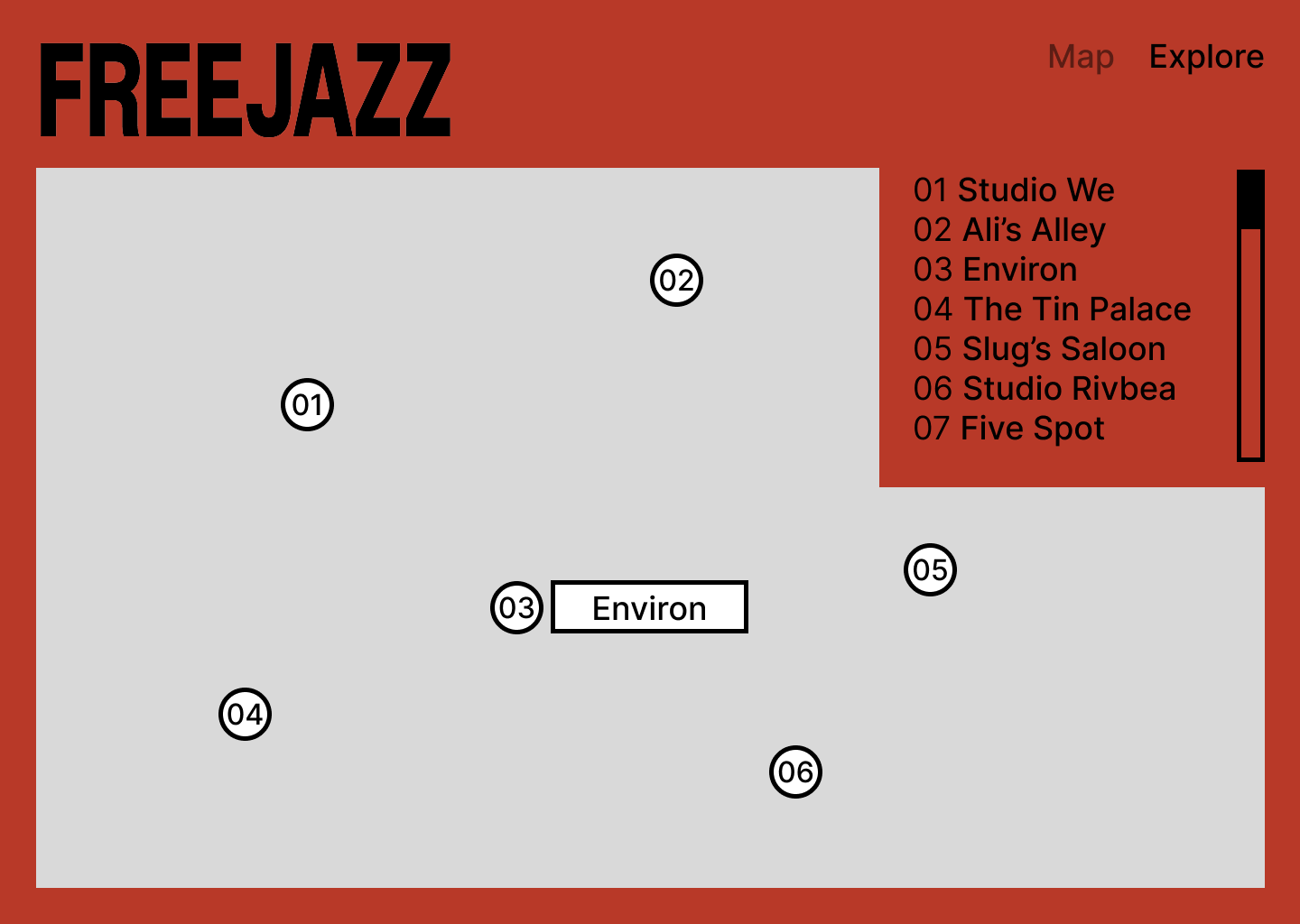 city’s jazz history through an interactive map. Each pin opens a dedicated page with archival photos,